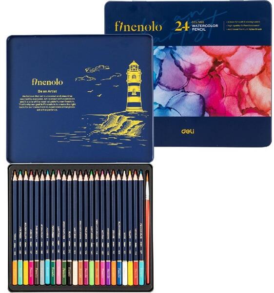 Deli 24 db-os fémdobozos akvarellceruza készlet (DEC129-24) - officedepot