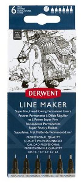 Derwent Tűfilc szett, 0, 05/0, 1/0, 2/ 0, 3/0, 5/0, 8 mm, DERWENT "Line Marker", fekete (E2305559) - tintasziget