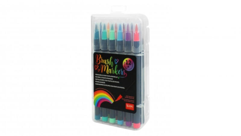 Legami ecsetfilc készlet 12 db-os, A vízbázisú tinta lehetővé teszi, hogy egy kevés vízzel elkeverve akvarell hatást érjen el. , 12 szín: rózsaszín, lila, világoskék, világoszöld, sötétzöld, benzinkék, kék, sárga, narancssárga, piros, barna és fekete. , Termék méretei 10 x 3 x 19 cm; 160 gramm