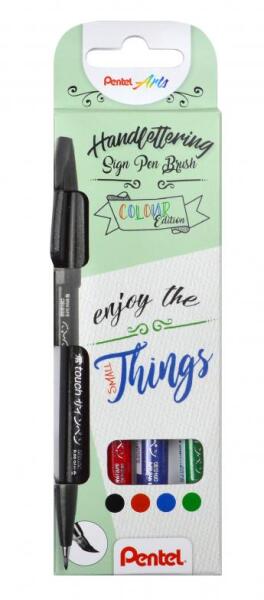 Pentel ecsettoll kalligrafikus hajlékony hegyű Brush Sign Pen 4 db-os - fekete, piros, kék, zöld (SES15-4)