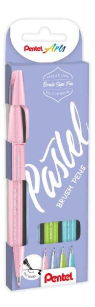 Pentel ecsettoll kalligrafikus hajlékony hegyű Brush Sign Pen 4 db-os - vpink, vkék, skék, vzö (SES15P-4)