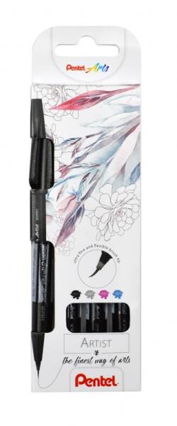 Pentel ecsettoll vékony Brush Sign Pen Artist 4 db-os - fekete, piros, kék, zöld (SESF30C-4)