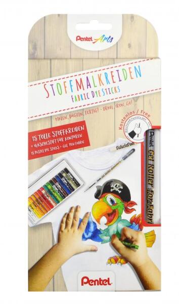 Pentel textilkréta 15 szín + 1 db textilre író zseléstoll díszdobozos szettben (PTS15/BN15-SET1)
