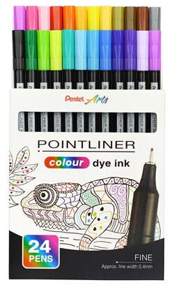 Pentel Tűfilc készlet, 0, 4 mm, PENTEL "Pointliner", 24 különböző szín (S40-24)