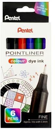 Pentel Tűfilc készlet, 0, 4 mm, PENTEL "Pointliner", 6 különbözõ szín (6 db) (PENS406)
