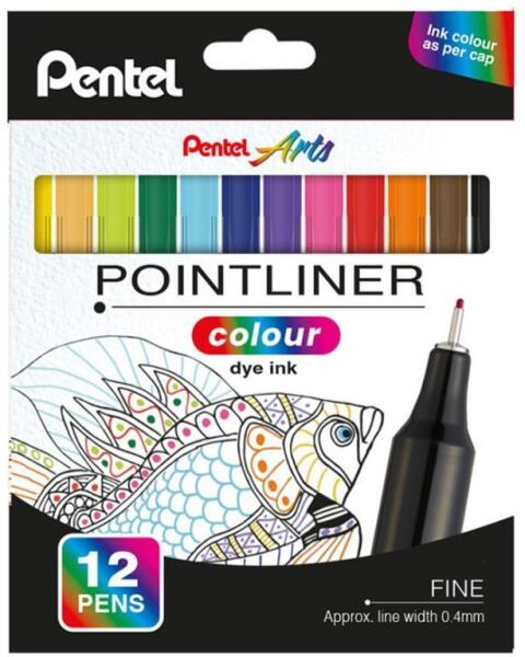 Pentel tűfilc SZÍNES Pointliner 0, 4 mm - 12 darabos szett (S40-12)