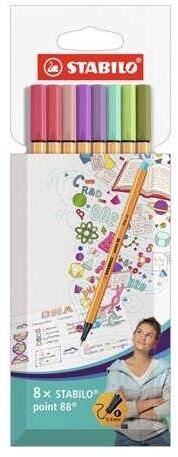 Stabilo Point 88 tűfilc készlet, föld árnyalatok, 8db-os -8 különböző szín - vékony és pontos írás - rozsdamentes fém hegy a hosszú élettartamért - hatszög alakú, világszerte ismert csíkos dizájn - műszaki rajzhoz kiválóan alkalmas - hosszú ideig nem szárad ki kupak nélkül - szellőző kupak - PP tolltest - vízbázisú tinta - vonalvastagság: 0,4 mm