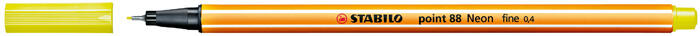Stabilo Point 88 tűfilc Neon sárga- Egy STABILO klasszikus a színes álmok megvalósításához- Számos európai ország első számú tűfilce, kiváló ár-teljesítmény aránnyal- Fémfoglalatú hegye kiválóan alkalmas vonalzó és sablon használatához- Hosszú nyitva tarthatósági idő- Légáteresztő szeleppel ellátott kupak- Vízbázisú tinta- Vonalvastagság: 0,4 mm- Szín: neon sárga