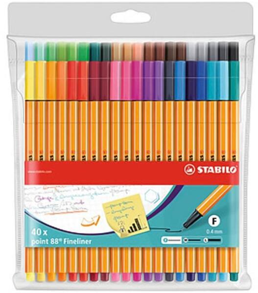 STABILO Rostirón, tűfilc készlet, 0, 4mm, 8840 Stabilo Point 88, 40 klf. szín - suplix