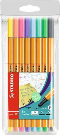 STABILO Tűfilc készlet, 0, 4 mm, STABILO "Point 88", 8 pasztell szín (8 db) (TST88801)