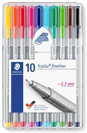 STAEDTLER Tűfilc készlet, 0, 3 mm, STAEDTLER "Triplus 334", 10 különbözõ szín (10 db) (TS334SB10)