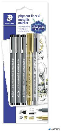 STAEDTLER Tusfilc és dekormarker készlet, 5 db, STAEDTLER, "pigment liner 308 (308 SBK3P3) - alter