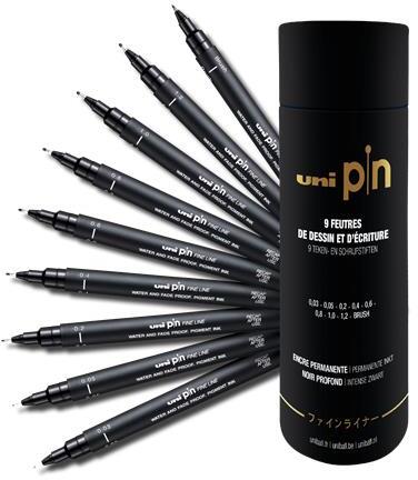 uni Rajzmarker készlet, UNI PIN "Tube", 9 különböző vonalvastagság, fekete (TUPINTUBE) - irodasziget