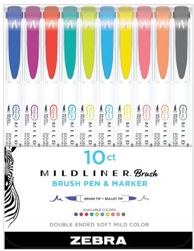 Ecsetirón Zebra Mildliner Brush&Marker 10-es készlet (Friendly, Refresh)